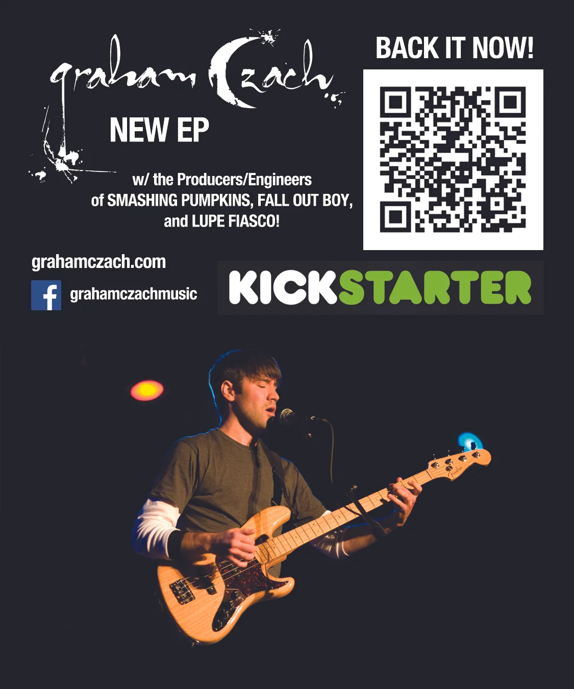 Currently working on a New EP w/ Songs Co-Produced by the Producers/Engineers of the Smashing Pumpkins, Fall Out Boy,Lupe Fiasco! Check out the EP Kickstarter Campaign (https://www.kickstarter.com/projects/grahamczach/graham-czach-ep)and become a backer! There are a ton of great rewards!
